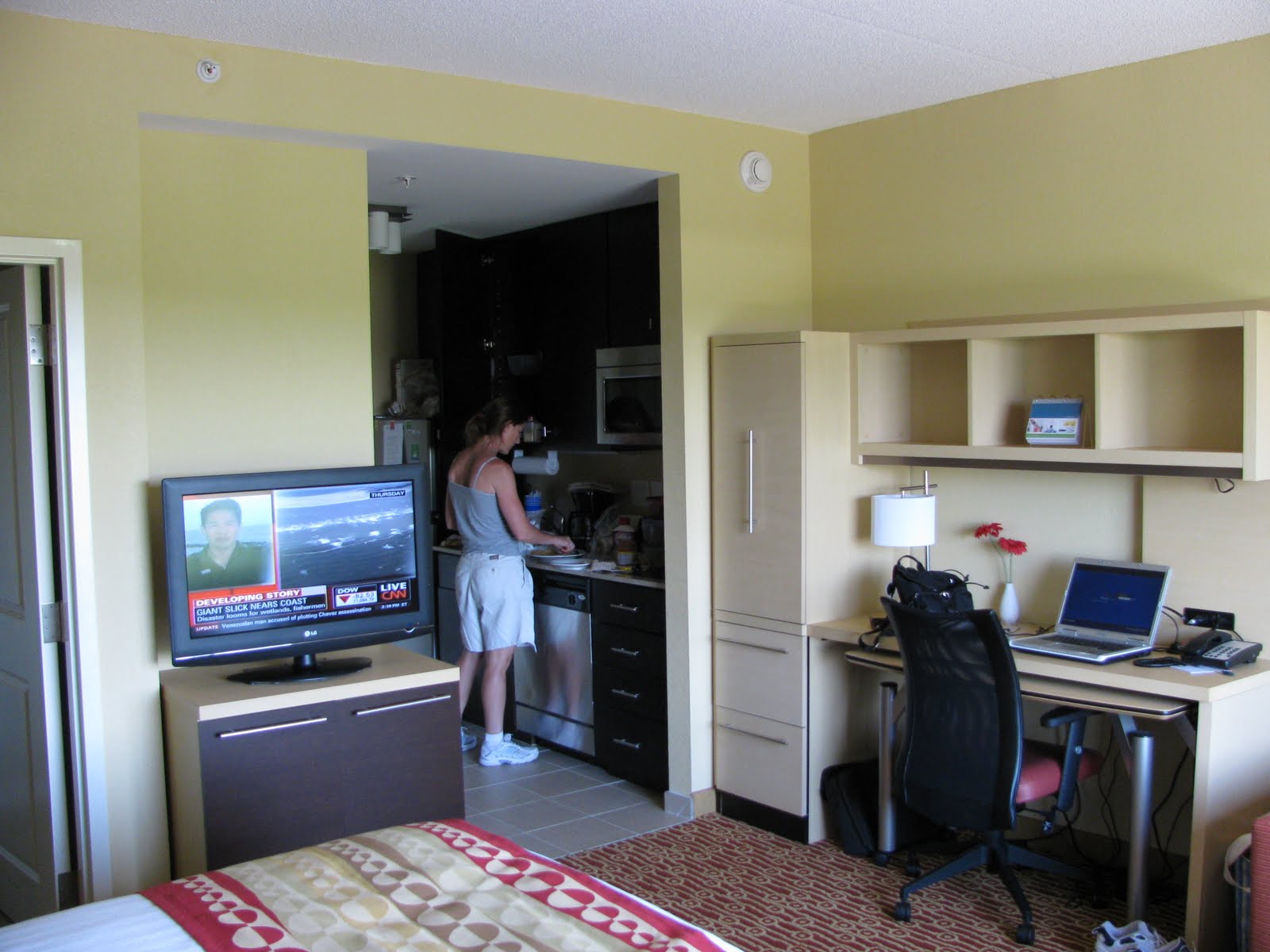 4/27 We decided to lay low on Tuesday, and put in some time by the pool. We also took a ride in the car to take in some sights- pools at other resorts, floor plans of new Vacation Club models, and happy hour at the Grand Floridian, with the orchestra playing. It's quite a place. Did I mention the weather has been fantastic? Not too hot, yet, and the breeze kept the humidity manageable. Dinner was pizza delivered to the room, we highly recommend local joint, Flippers.