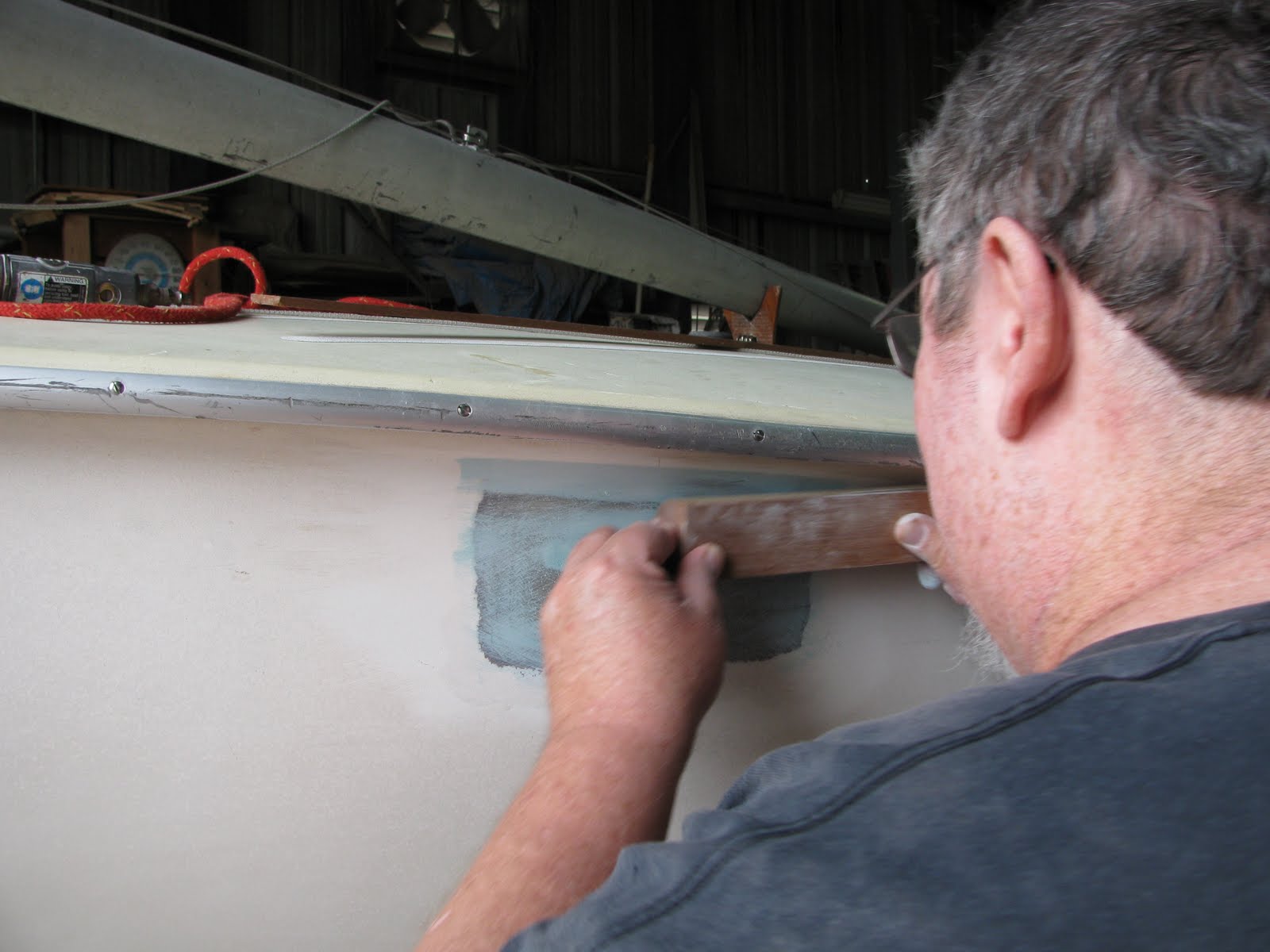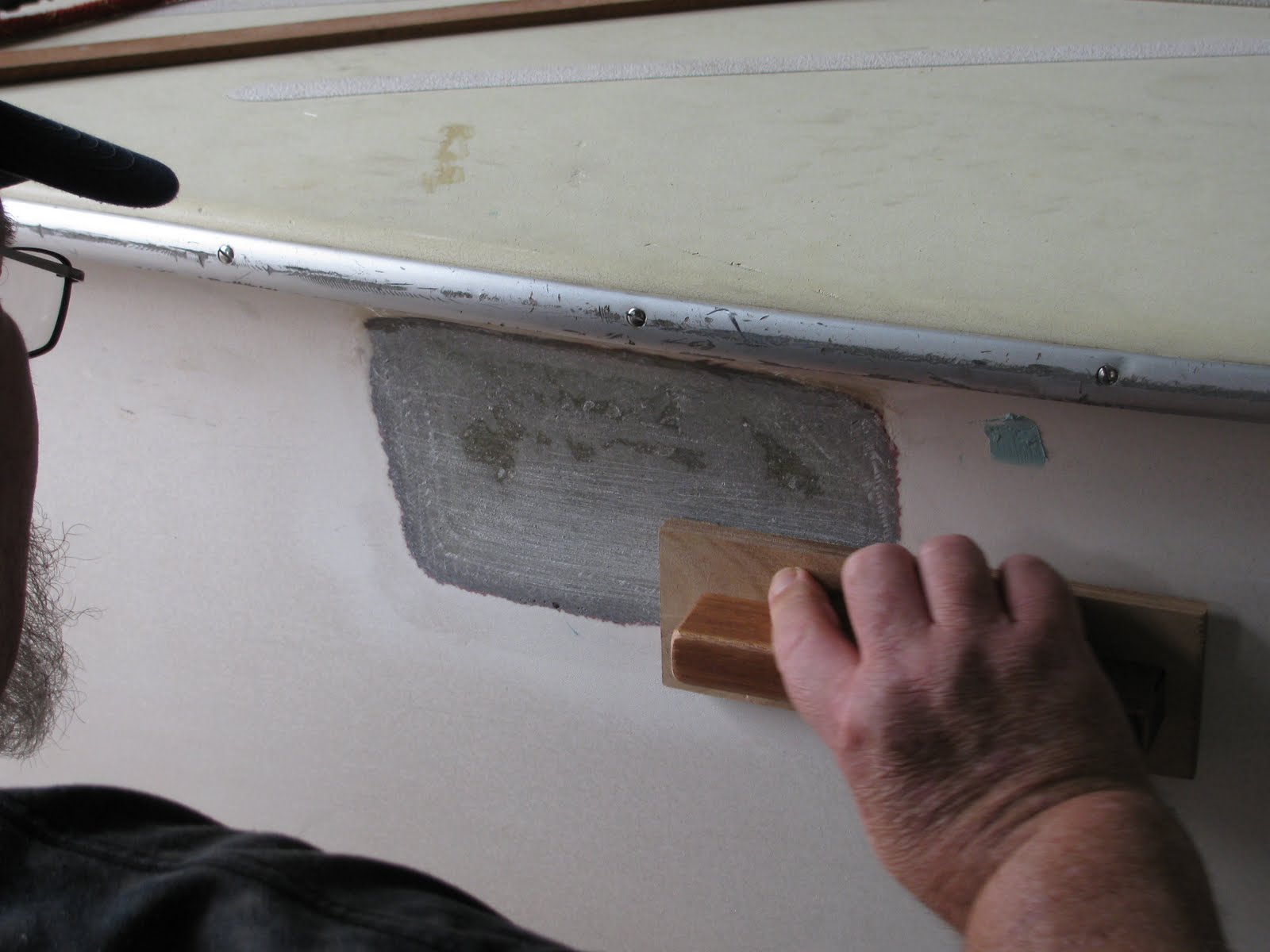 The filler applied is 3M Marine Filler which sets up quickly and sands well