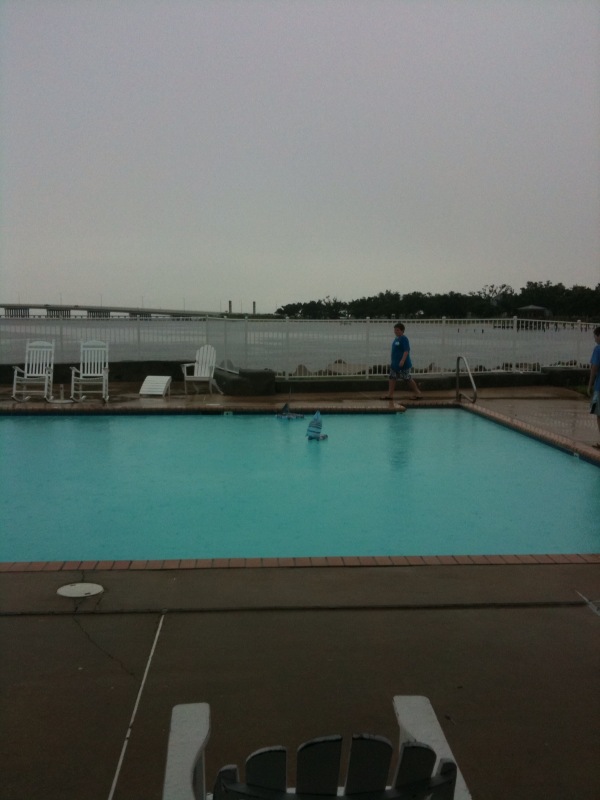 Tomorrow’s forecast: Dave Thinel was happy to remind me is down to only 90% chance of rain. Excellent! Clinton has a pocket full of shells, and evidently, a charged-up battery on the RC boat, which spent a long while at anchor while the steely and grey storm-clouds descended and a rescue boat was organized…Still no oil, thank goodness, and it’s good to know that Jim Cantore is in Padre Island, so we don’t expect Alex to visit us directly.