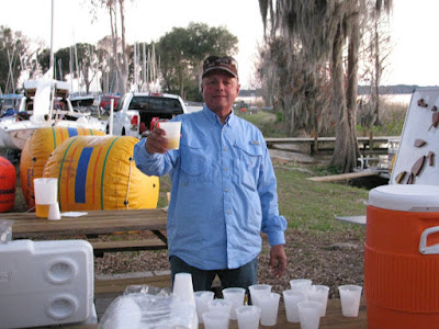 We have to mention the great turnout this year. Several boats from out of state, representing N and S Carolina, Virginia, and Maryland. Harry took the long way here, via New Orleans, to check out the NEW Southern YC and drop off 4 new Flying Scots. Thank goodness the weather turned warm for the folks! Seems like the first time in a long time we've been warm. In total, 28 boats registered for the event, it was quite a time! We are so fortunate to compete with such a talented group of sailors. Several past Midwinter, National and World Champions are on the list and on the water. Scots Rock!